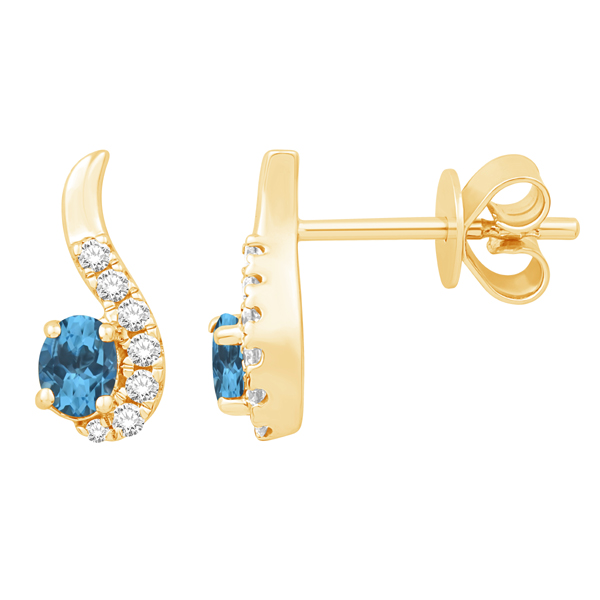 14K GOLD EARRINGS FEATURING DIAMONDS AND BLUE TOPAZ