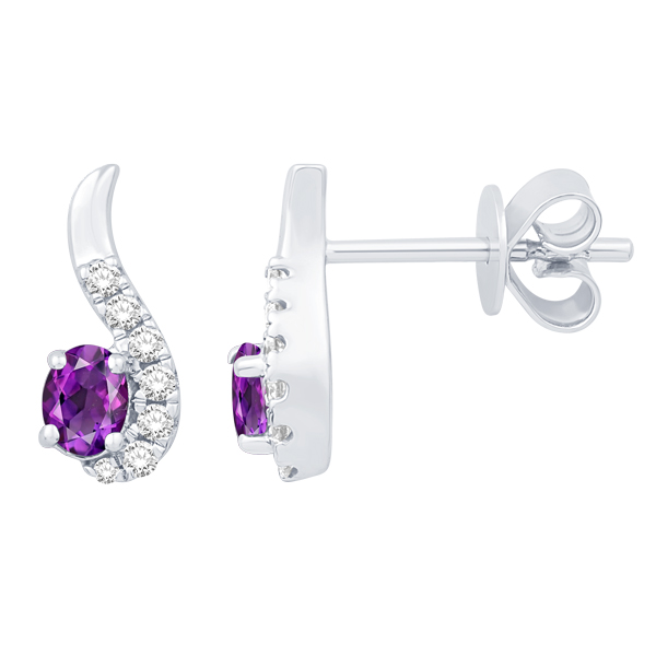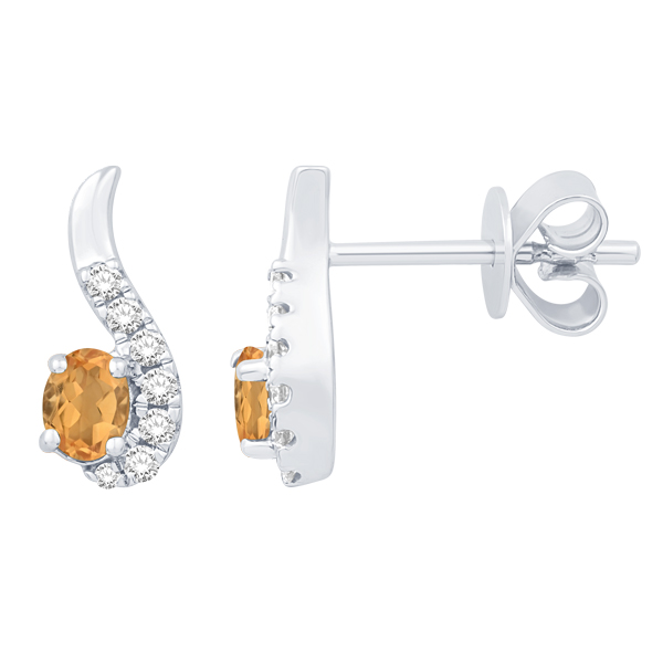 14K WHITE GOLD EARRINGS FEATURING ROUND DIAMOND WITH OVAL BLUE TOPAZ .DECEMBER BIRTH STONE.