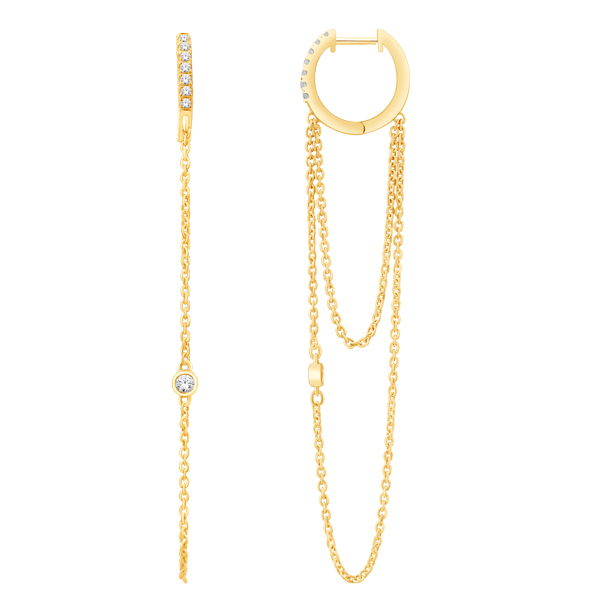 14K White Gold Diamonds By The Yard Huggie Dangle Earrings Featuring Round Diamonds .